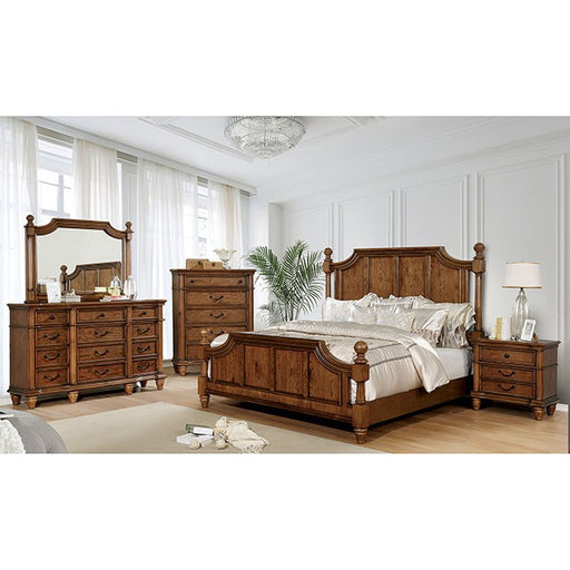 Get the look of posh barn wood without setting foot in a salvage yard. Replicated rough-sawn oak of this California king poster bed has a vintage-s...