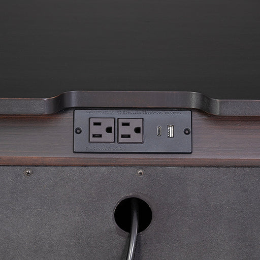 Mid-Century Modern Black Solid Wood, Acacia Veneer, Engineered Wood USB-A & USB-C Charging Ports Silver-Capped Legs Silver Round Knobs Ball-Be...