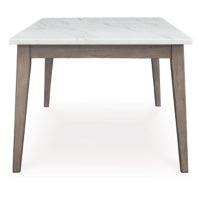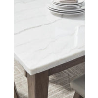 Elevate your dining experience with the Loyaska 7pc dining table set. This on-trend set features a grayish-brown finish and a white marble tabletop, adding elegance and sophistication to any space. Upholstered in taupe faux leather, the modern chairs provide both comfort and style. Made with solid hardwood and natural marble, this set is built to last and can seat up to 6. Assembly required.
