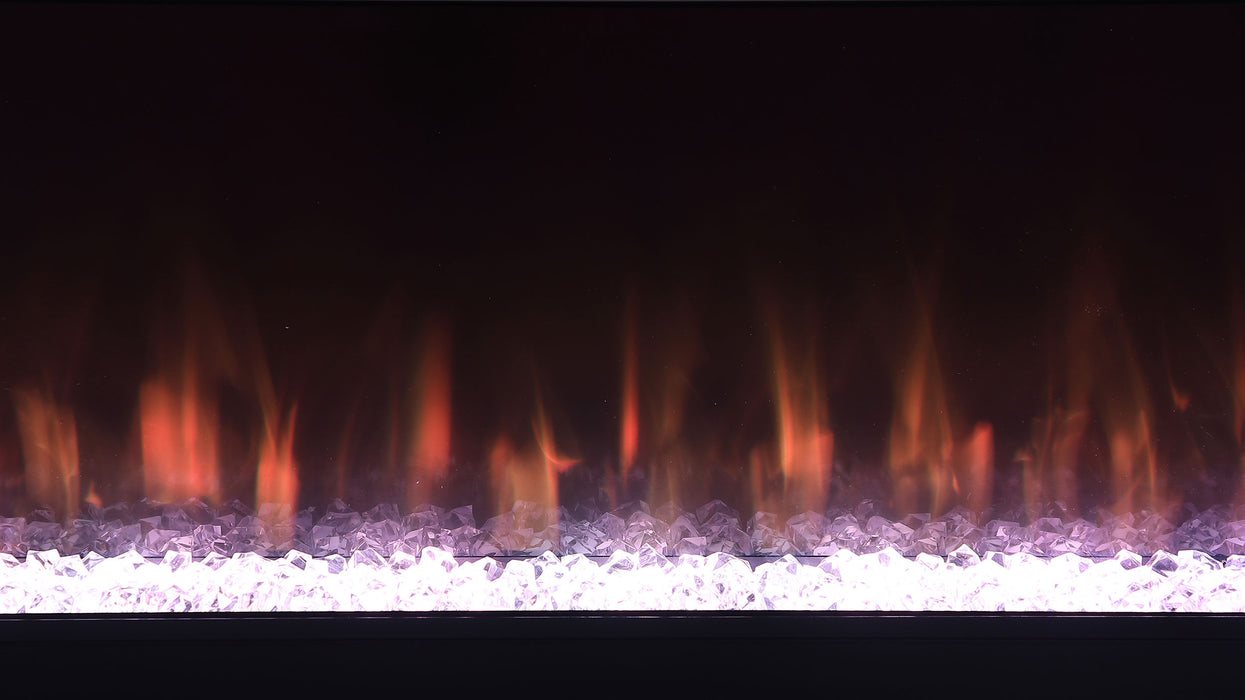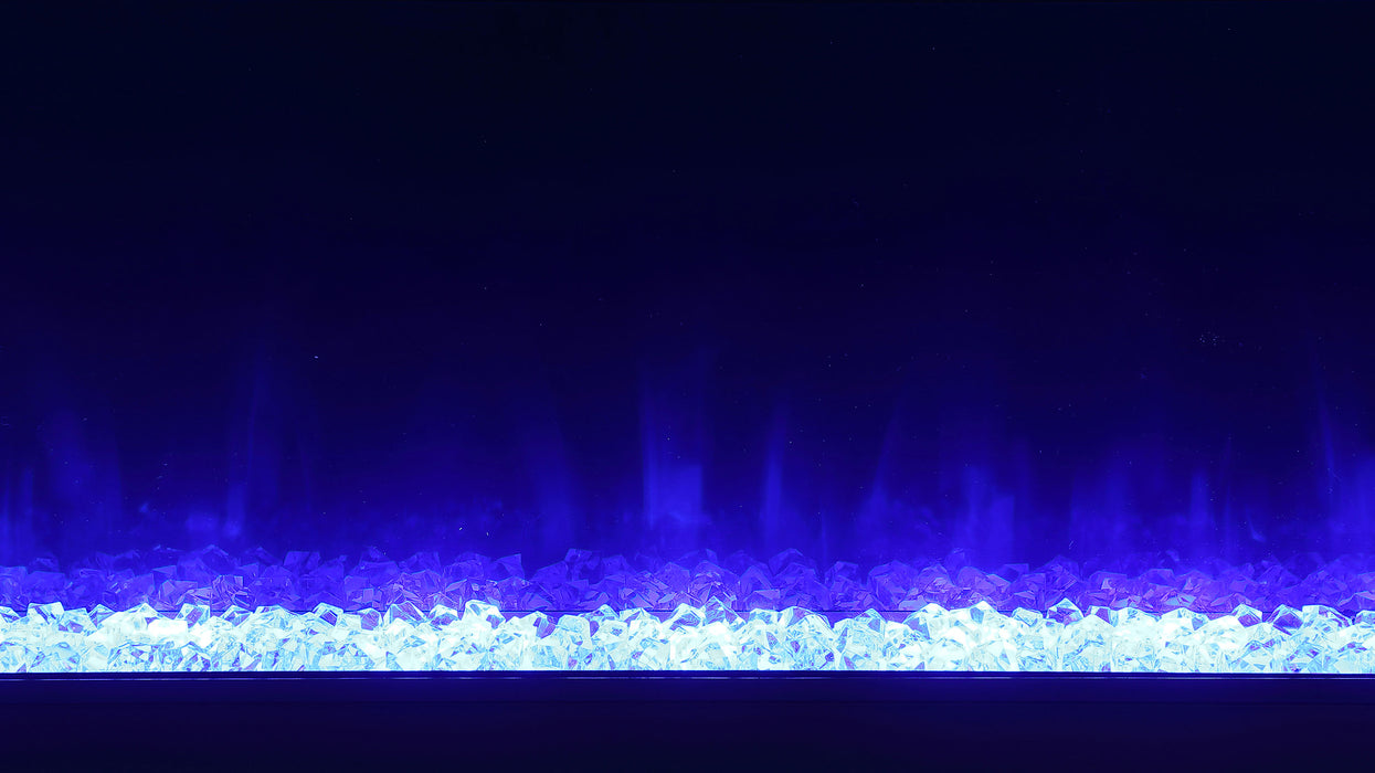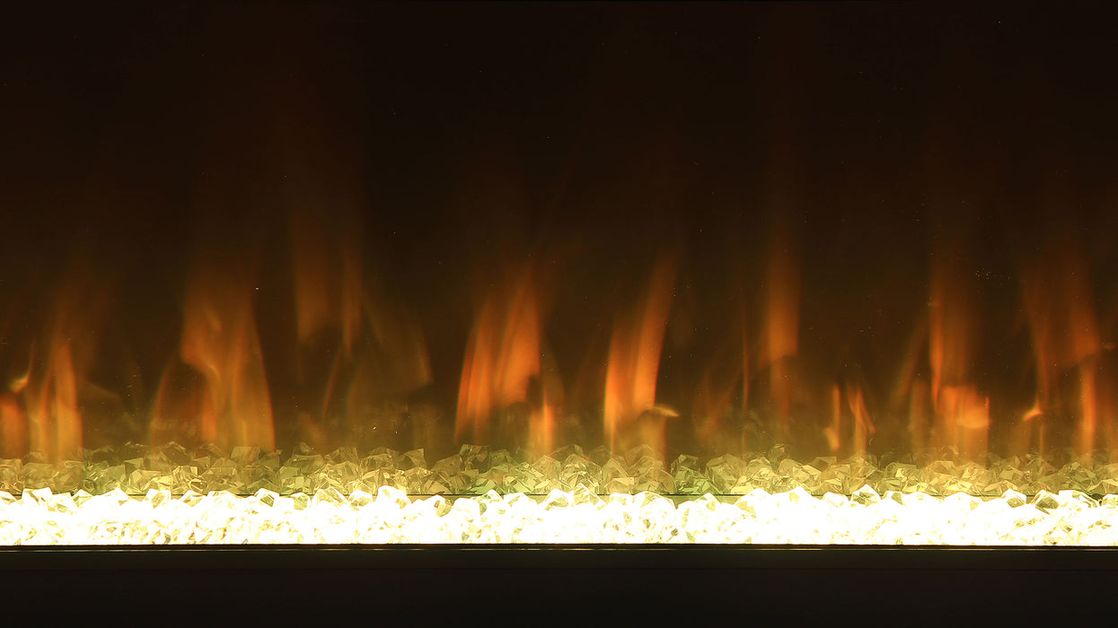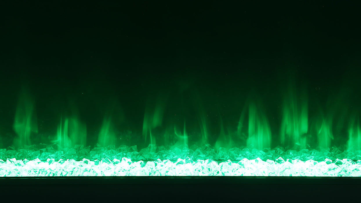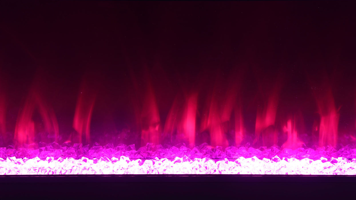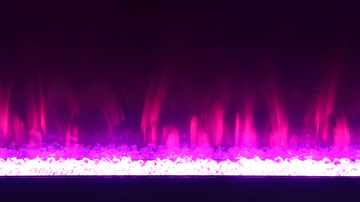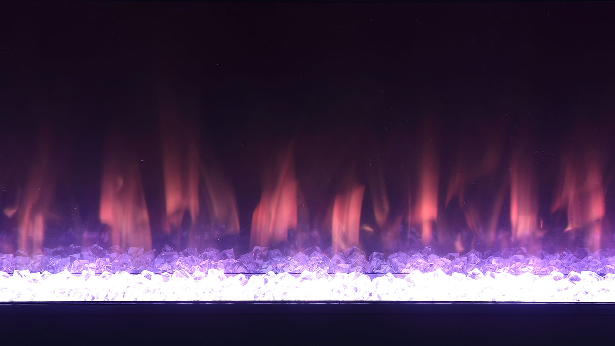 Emphasize ambiance with this modern TV stand, constructed from MDF and white glass, featuring a visual flame box insert. Its clean-lined silhouette is fresh and contemporary, making it a perfect focal point for TV entertainment or an ambient room setting. The visual flame box, made from a fire box and acrylic crystals, offers a realistic 3D flame simulator with multi-color settings, all controlled by a remote. Please note, this feature is purely for visual effect and does not generate heat. Easy to maintain due to its white glass material, this inviting TV stand accommodates televisions up to 72 inches and also includes a Bluetooth speaker control.