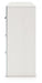 - Matte white finish with subtle replicated wood grain